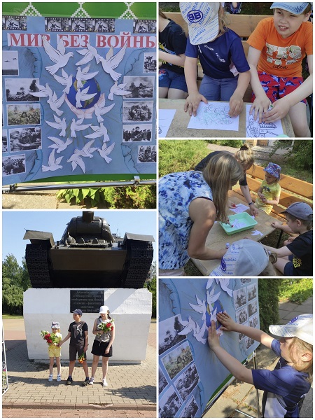 На свежем воздухе ребята приняли активное участие в создании коллажа «Мир без войны».
