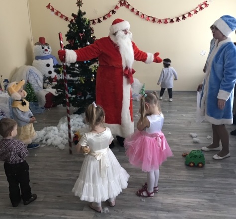 Дети и родители с удовольствием приняли участие в Новогоднем представлении: водили хоровод вокруг елки, пели песни и танцевали, участвовали в весёлых конкурсах, смогли вживую пообщаться со сказочными персонажами.