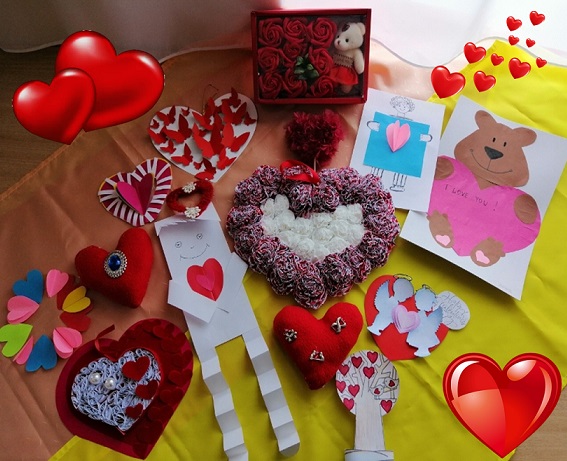 В ней приняли участие обучающиеся центра и их родители. На выставке было представлено большое количество самых разных «валентинок»: маленькие и большие, бумажные, картонные, нарисованные и разрисованные, вязаные, плетеные из проволоки и нитей.